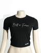 Elevate your style by layering this crop top over pants or a skirt and accessorizing with heels for a more polished and sophisticated look. The bold font design adds a touch of edge to your outfit, while the soft bamboo fabric drapes beautifully, creating a flattering silhouette that turns heads wherever you go.